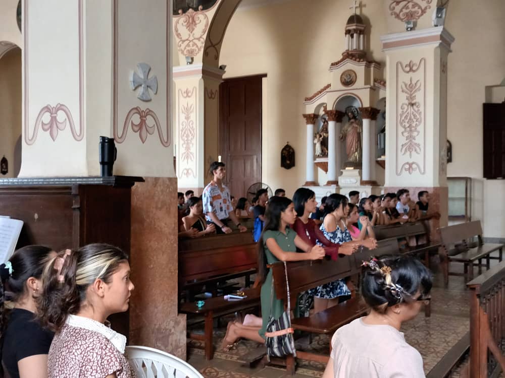 El pasado 17 de abril se dieron cita en la Catedral Santísimo San Salvador de Bayamo, provincia Granma, Cuba, para celebrar la Pascua Juvenil Diocesana. Animada por el Fray Amado Rafael, y acompañada por los presbíteros Fernando Vega Machado y Sergio Daniel Maceo Salcedo, así como la Hermana Sor María.